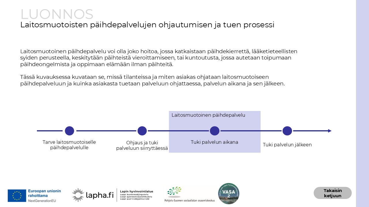 - Päihdepalveluketju, sisältäen ohjeet ammattilaisille