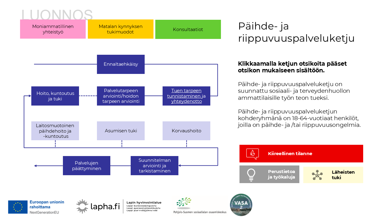 Päihde- ja riippuvuuspalveluketjun löytää täältä (linkki avautuu uuteen välilehteen).